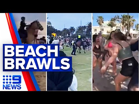 Chaotic scenes at St Kilda Beach after Melbourne Cup celebrations | 9 News Australia - St Kilda Beach Adelaide